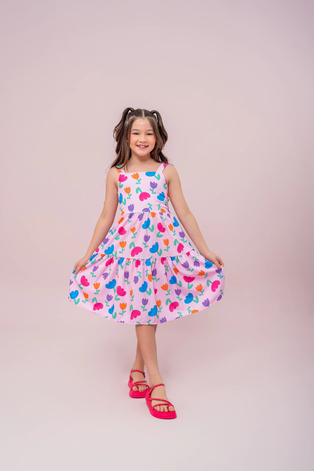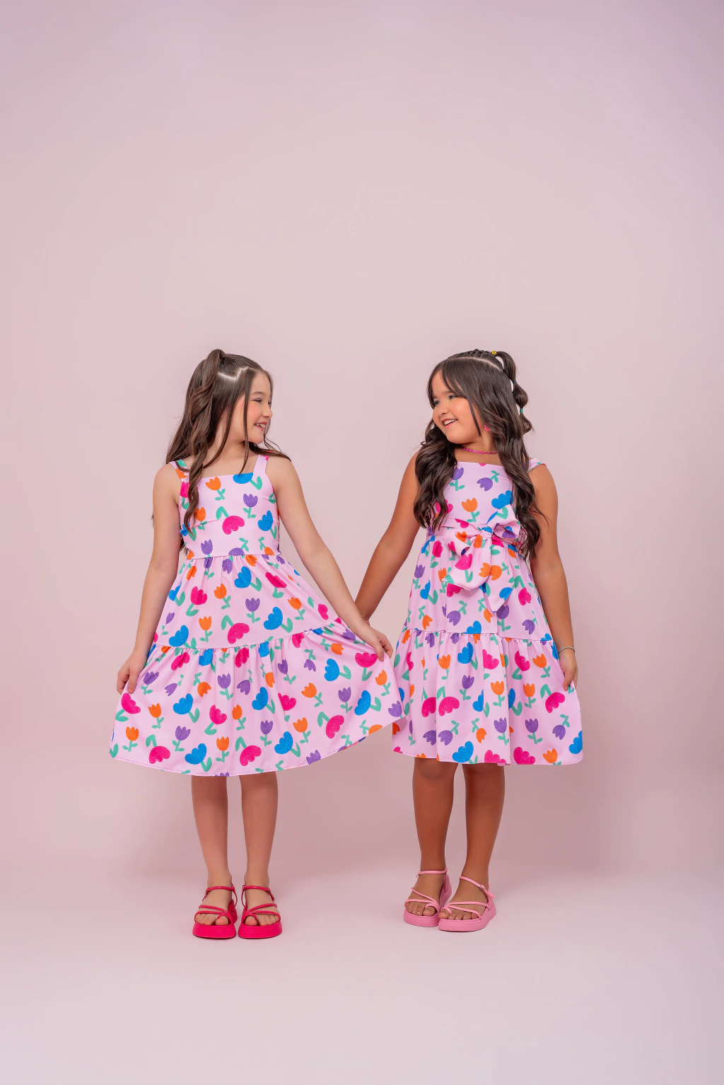 Além disso, a amarração lateral na cintura é um charme à parte, oferecendo duas opções de uso para se adaptar ao gosto da mamãe e à personalidade da pequena, tornando o Vestido Cris uma escolha versátil e prática.