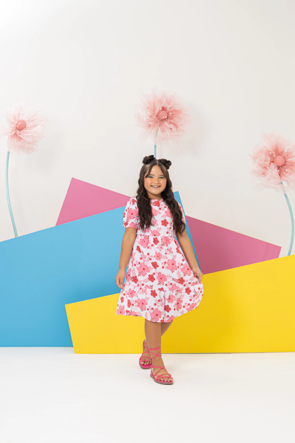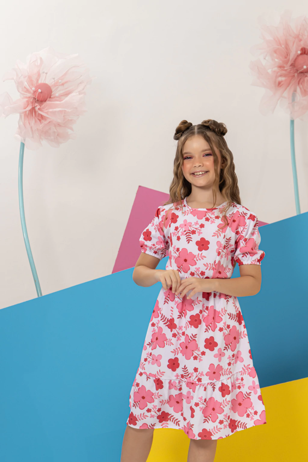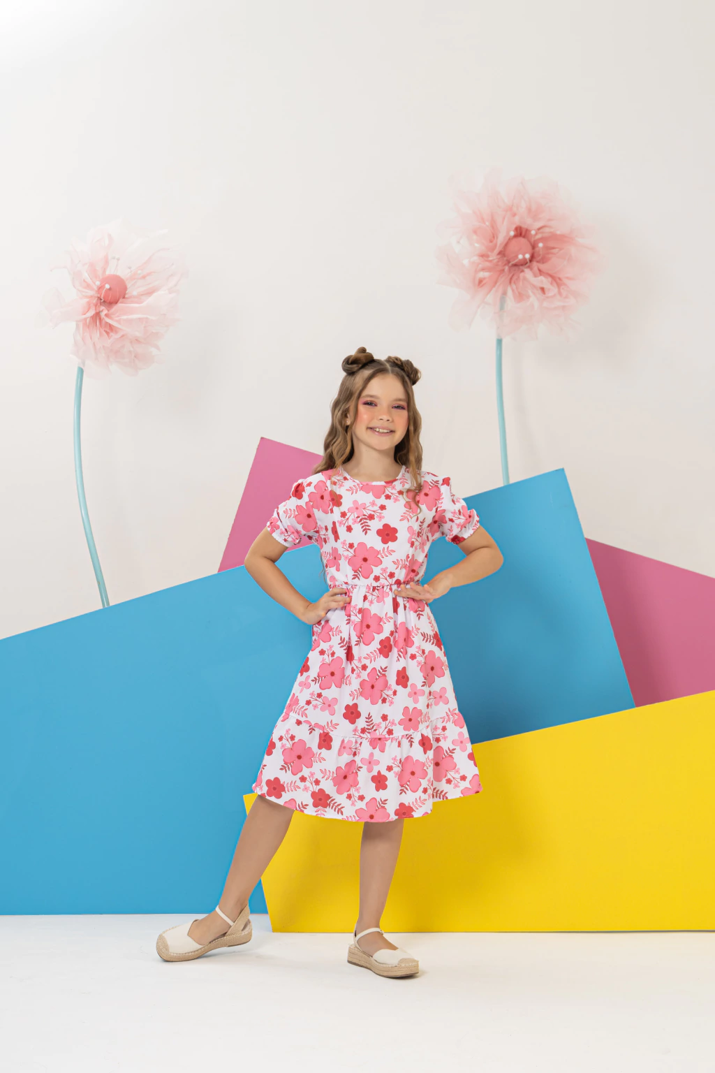 Um modelo prático, que possui cintura franzida, manga com elástico e barrado com babado. Perfeito para os dias que suas princesas precisam estar ainda mais encantadoras.